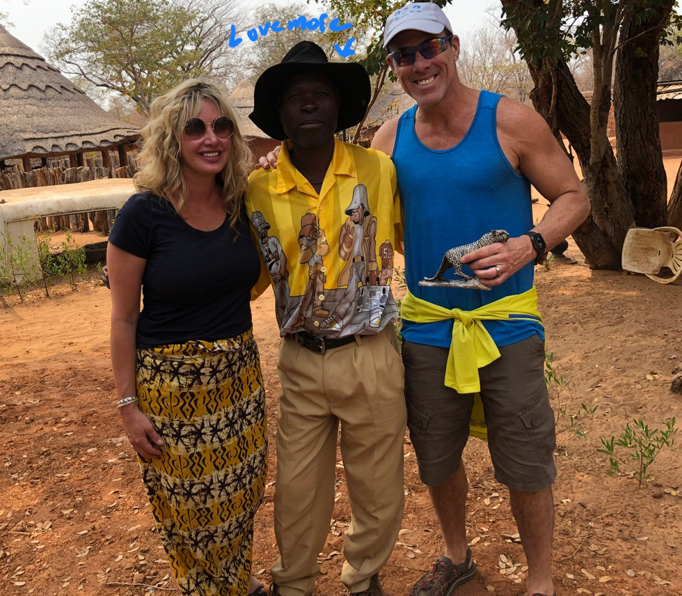 Saying goodbye was very difficult, to our friends, at Londolozi. But we did it, and we moved on, and we took a flight from basically the bush to a small airport. From there, we took a flight to Zambia. In Zambia, we landed. We had to get our $50 Visa and Libby White was there to pick us up and drove us across the border, where we had to the Visa stamped again in Zimbabwe. From there, it was time to see Victoria Falls, but because it took so long to get through the line in Zambia, we didn't have much time, so we basically ran through the falls. Got some good pictures. They have a neat little park you can walk through, but definitely impressive and beautiful, especially with the perma-rainbow they had. After that, we went in to check into our treehouse, which is called the Island Lodge and Blessed, that's his name, took us from the land, on a boat, straight up to the lodge. We checked in with Peter. Great guy, interesting guy and did a quick turn-around and then got ready for our sunset cruise. On the sunset cruise, we met our new friends from Indiana, Mark and Tammy. Mark can drink like a complete fish and was pretty wasted before you knew it! We had tons of laughs, great conversation, and agreed we all need to eat dinner together one night. This hotel is all-inclusive, so everything, all your meals, are right there. After that, we had a good dinner and ended up drinking throughout the night again with Mark and Tammy and he got pretty excited when I promised him I'd give him some mints afterwards. The next day was just non-stop. Almost too non-stop. We started the day with a visit to the village, where we met Lovemor, definitely a third world village. He showed us around, how they make millet, how they have to tippy-toe to wash their hands. He made me rake the field, which is basically a bunch of sand, because there was sand everywhere. He showed us the projects he's working on, his high-tech stuff. One thing was a system so that you can put cow dung in a pipe, mix it with water, and get gas. It worked! He then showed us his new fishing ponds that he's planning on farming fish to add to their diet. What an interesting life they live. After that, and buying about $70 in their "gift shop" we moved on to the next thing to do, which was the helicopter ride called the Flight of Angels around the falls. The pilot, military guy that had done some work in the Congo apparently: Well he flew like he was still in the war. Suffice to say, Chelle almost puked and I would be lying to say I wasn’t zeroing in on the vomit bag at times!
