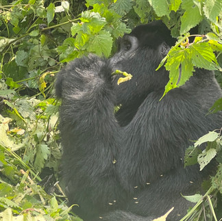 Day two was even better — it rained, making the trek challenging and authentic. We were bushwhacking with machetes through thick jungle. But the reward? An unforgettable encounter: pregnant gorillas, a mating pair, babies, and yes, even one mid-defecation. Nature in all its glory. The group was great, except for one American woman who complained the entire time — “too hard,” “not in the brochure,” etc. There’s always one.